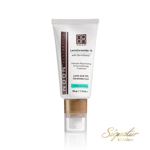 LactoCeramide-15 er spesielt utviklet antiage formulering basert en vinnende kombinasjon av 15% melkesyre og ceramidene 2, 3, og 6. Grunnet innholdet av DermShield, kan den anvendes av alle hudtyper og gjennom alle årstider, uten å forårsake irritasjon eller tørrhet. Melkesyre stimulerer og forynger huden, noe som gir en betydelig forbedring i hudens tekstur og fuktighetsnivå. Ceramider utgjør en perfekt kopi av lipidene som finnes i det øvre laget av huden. Egnet for bruk i nærheten av øynene.