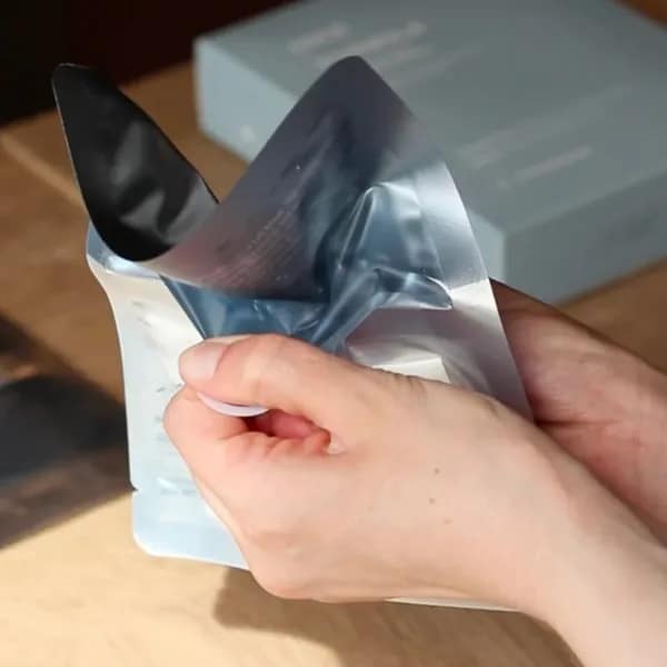 1. Trekk først i flikene for å frigjøre serumet i posen.