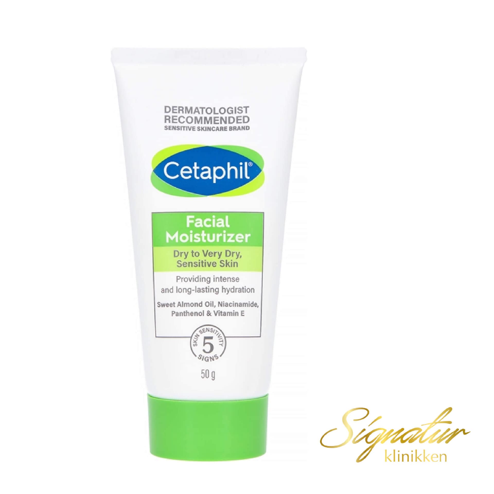 Cetaphil Facial Moisturizer er en parfymefri hudkrem spesielt formulert for å gi intensiv fuktighet til tørr og sensitiv hud. Du kan bruke den på ansiktet, hender, føtter, albuer, knær i utgangspunktet hvor som helst der huden trenger intensiv fuktighet. En unik formel. Den inneholder glyserin, som har evnen til å tiltrekke vann og binde det til huden. Inneholder også solsikkeolje og søt mandelolje, som kan gi næring til huden og bidra til å styrke hudbarrieren. En rik krem som er lett å smøre inn, uten å føles for fet.
