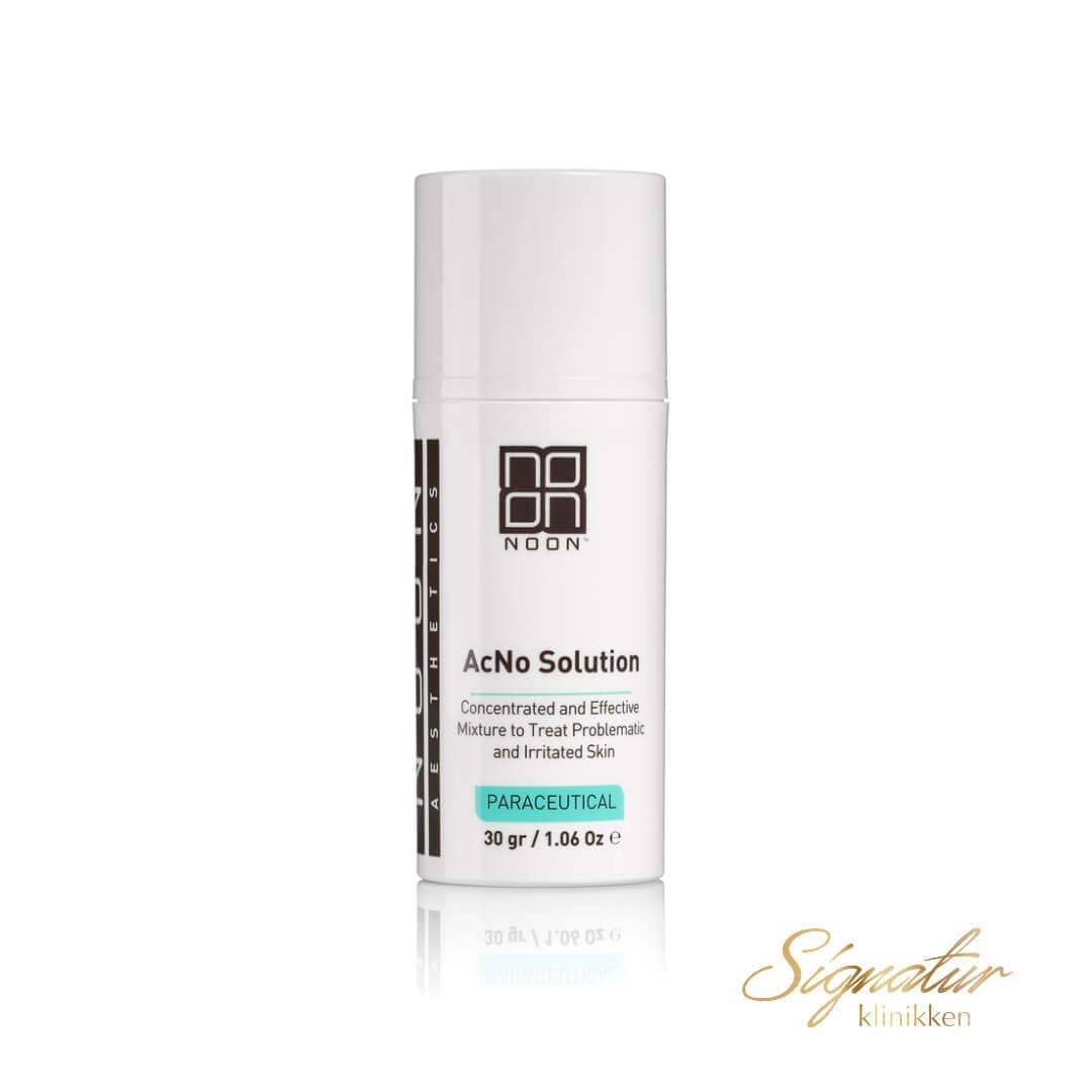 AcNo Solution inneholder en konsentrert og effektiv blanding av antibakterielle ingredienser som brukes til å behandle problematisk og irritert hud. Den bidrar til å reduserer talgproduksjon og rødhet, regulerer overdreven talgproduksjon, senker sensitivitet og irritasjon, samtidig som den forbedrer hudens fuktighetsnivå. Anbefales med fordel til de med dype og inflammerte kviser.