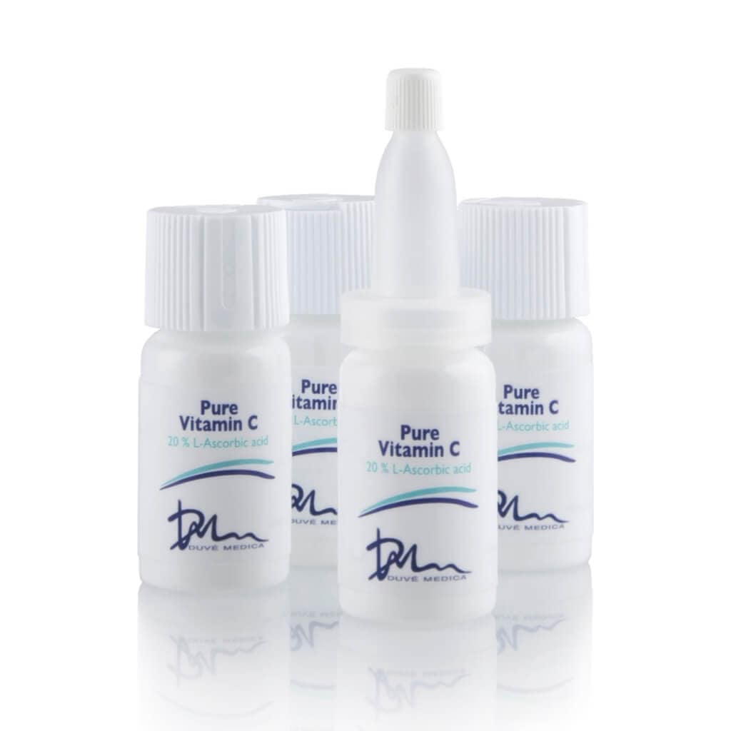 Virkestoffet i Duvè Medica Pure Vitamin C er L-ascorbic acid. Dette er den vitenskapelige betegnelsen for vitamin C i sin reneste form. Det er den kraftigste antioksidanten blant de forskjellige C vitaminene og er det virkestoffet som er dokumentert mest effektivt når det gjelder å bygge opp igjen kollagenet i huden. Kollagen er et protein, som bygger opp huden, slik at den blir fastere, strammere og mer elastisk. Du vil også få merkbart jevner hudfarge og oppleve en fin glød i huden.